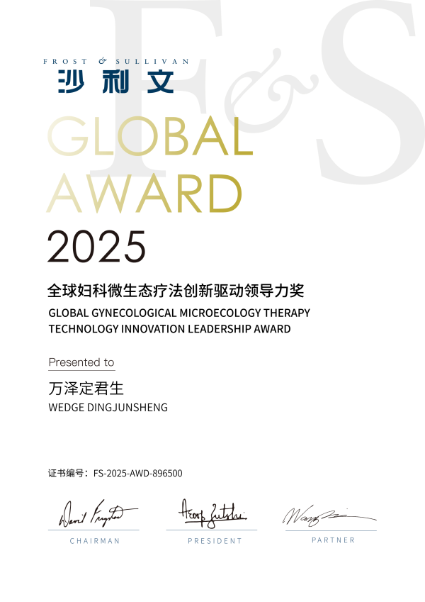 基于近几年全球微生态活菌市场的调研和分析,以及对业内相关公司的研究和评估,弗若斯特沙利文(Frost & Sullivan,以下简称“沙利文”)授予万泽股份医药业务(以下简称“万泽医药”)「全球肠道产品领导力奖」及「全球妇科微生态疗法创新驱动领导力奖」。