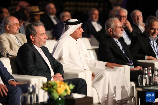 5月10日,伊朗外长阿拉格齐(前排左一)在卡塔尔多哈出席第四届阿拉伯-伊朗对话会议。新华社发(主办方供图)
