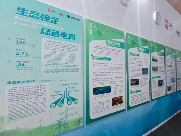 现场设置生态强企建设专题展,展示中国南方电网在清洁能源供给、数字电网建设、绿色产品供给和电碳资源配置平台构建等方面的标杆案例与未来展望。