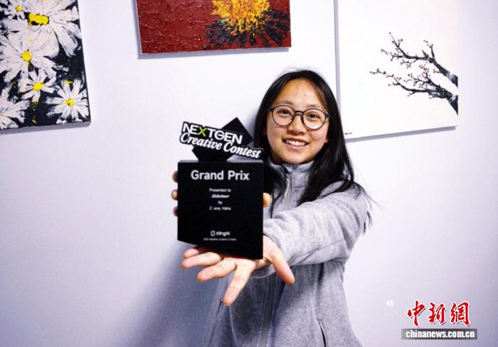 图为曹懿喆(中)参加首届NEXTGEN全球新影像创作大赛颁奖典礼。曹懿喆供图