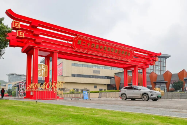 盛会开幕在即,酒香渐满酒城。3月17日,在泸州国际会展中心,以中国传统建筑风格为主体,辅以麒麟温酒器、酒樽等造型和“酒博40历‘酒’弥新”文字的第二十四届酒博会门楼已搭建完毕。目前,第二十四届酒博会氛围营造和场馆搭建工作基本完成,参展酒企已开始陆续进场布展。